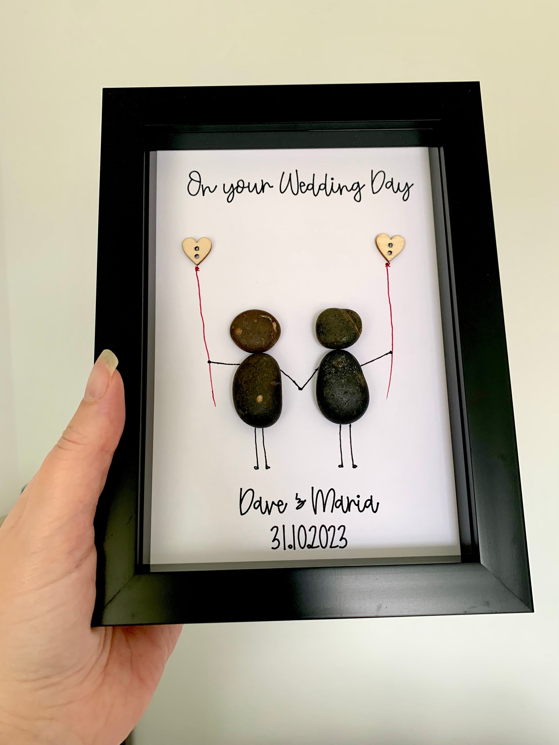 Personalised Wedding Pebble Art Frame Couples Anniversary Present
